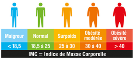 L’IMC permet de se situer. Un exemple : vous pesez 63kg et mesurez 1,65m. Votre IMC est 63/(1,65×1,65) =23,14